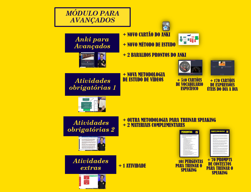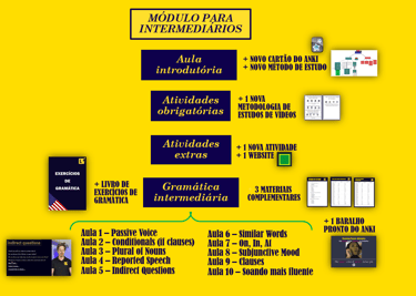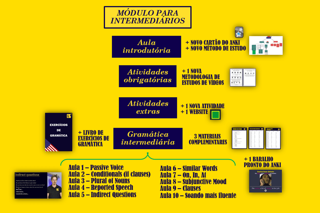 ✅ O estudo de gramática é apenas o necessário para o bom domínio da língua inglesa, mas sem decoreba chata.